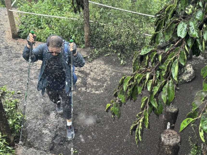 산행 전에는 방충망이 달린 모자와 긴 소매 옷을 착용하세요. 퇴치 스프레이나 휴대용 모기장망을 사용하면 얼굴 주변 곤충 피해를 크게 줄일 수 있습니다.