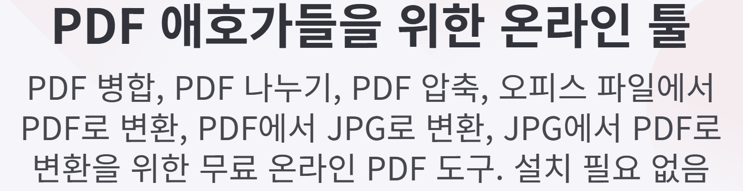 아이러브 PDF는 온라인 기반이라 설치 없이 브라우저에서 바로 사용이 가능합니다. PDF 편집이나 변환 도구를 따로 설치할 필요 없이 즉시 파일을 업로드하고 원하는 작업을 수행할 수 있다는 점이 큰 장점입니다.